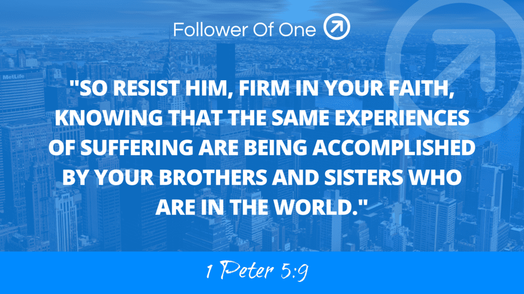 I like to talk about the universal job description. Some people ask for God’s direction and right here, we have a universal job for all Christ-followers. One of our key jobs is to resist the devil, firm in our faith knowing that in whatever way we suffer, others are enduring that same challenge elsewhere in the world.