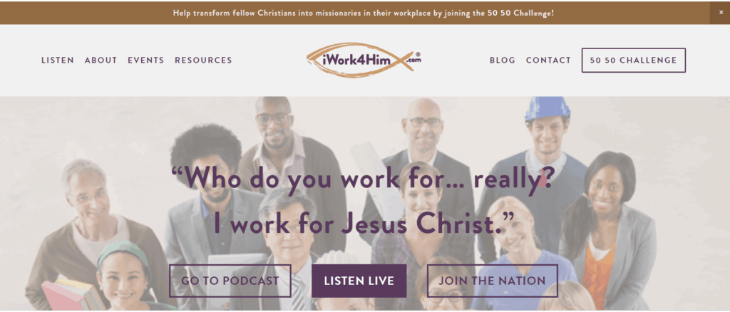 iWork4Him broadcasts weekdays to share testimonies, hear from authors and speakers and tackle topics to encourage you to look at your workplace as your mission field.
